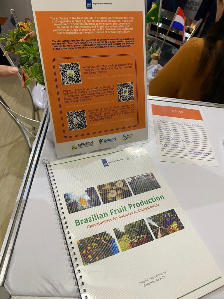 O Ibrahort lançou a pesquisa “Horticultura Brasileira: oportunidades e negócios”, estudo que foi solicitado pela Embaixada do Reino dos Países Baixos no Brasil com o objetivo de gerar oportunidades de negócios entre Brasil e Holanda. A Abrafrutas também produziu o mesmo estudo na área de fruticultura, assim como a Exchange4Change Brasil que analisou a economia circular do setor. A apresentação oficial destes documentos ocorreu no estande da Embaixada do Reino dos Países Baixos no Brasil.